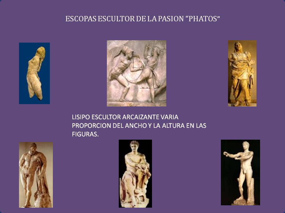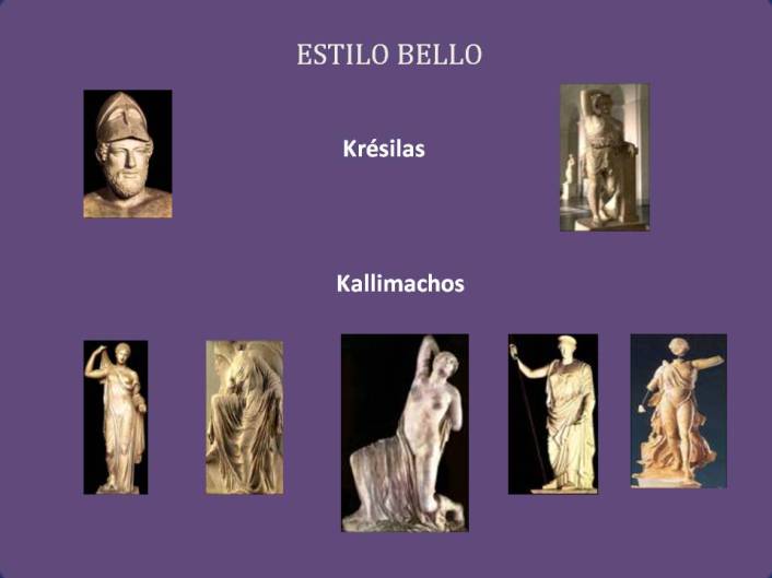 –       El estilo Bello, donde se destacan Escultores como Escopas, Praxiteles y Lisipo.