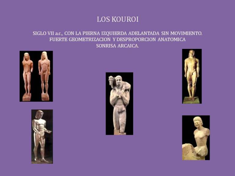 –       Los kouroi o efebos (kourós en singular), figuras de atletas desnudos.