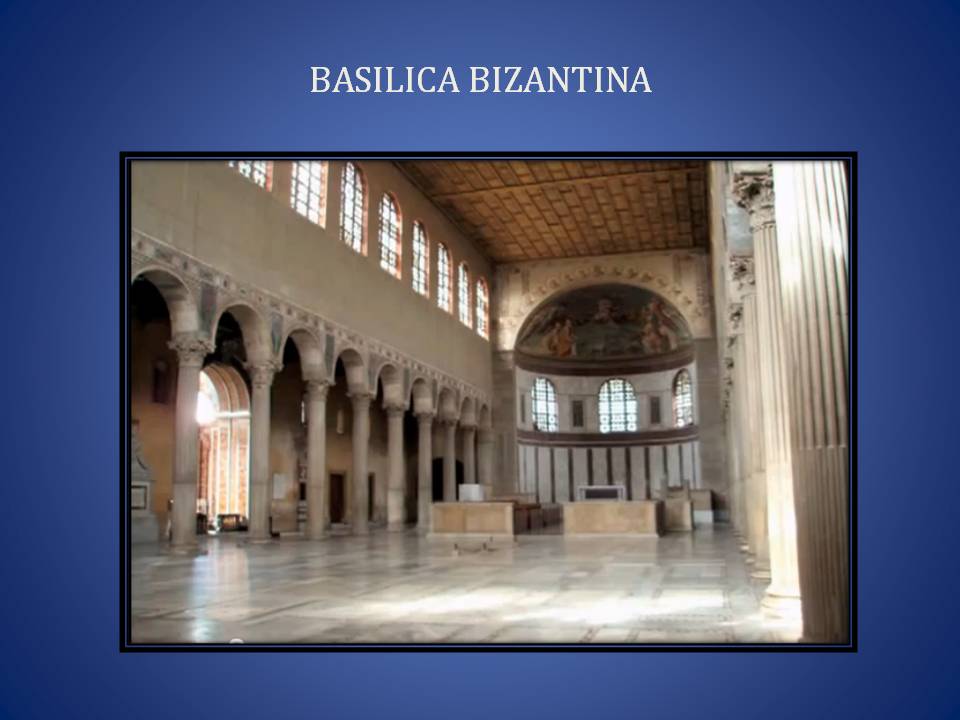 La cultura Bizantina toma como base importantes elementos del arte clásico greco-romano como las basílicas que se adaptaban mas a sus necesidades de liturgia y congregación que podía albergar mayor cantidad de personas en su sala central de gran tamaño.