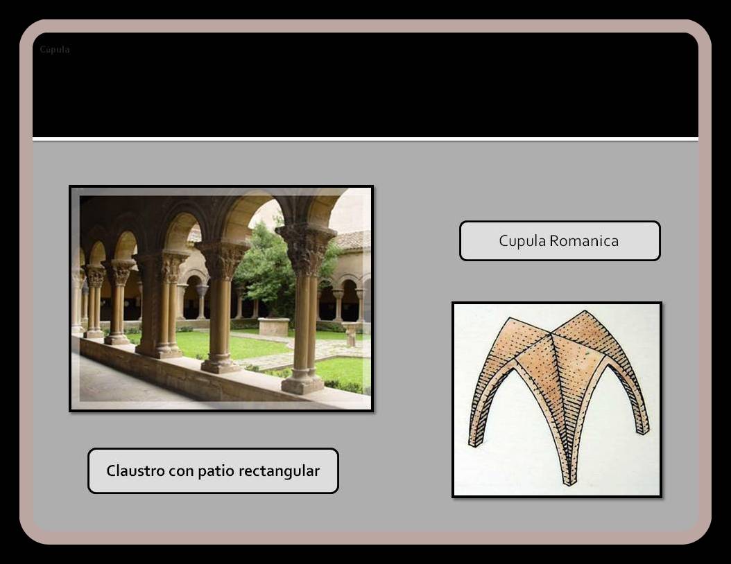 – Arcos. El característico del Románico es el de medio Punto peraltado o no.