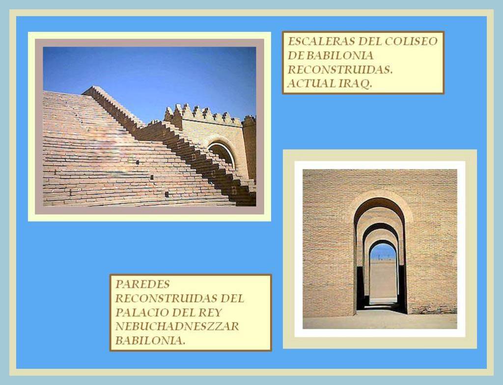 Escaleras del Coliseo de Babilonia y puerta abovedada reconstruida.