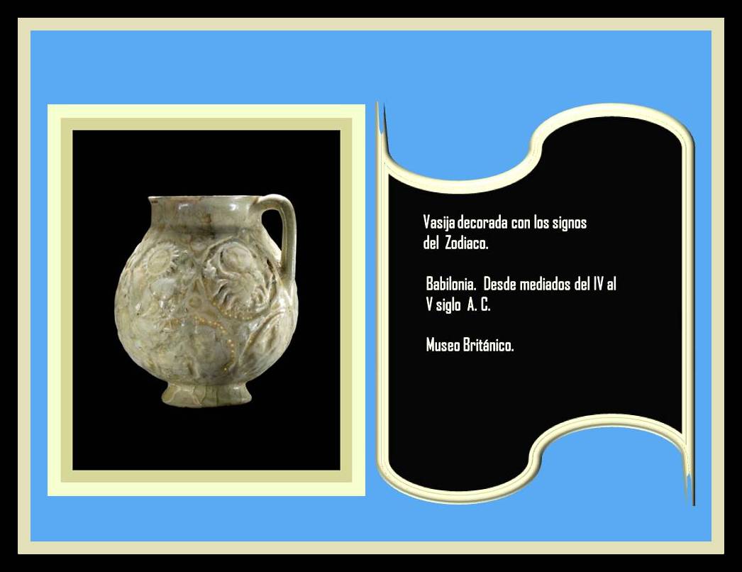 vasija Babilonica decorada con los signos del Zodiaco.