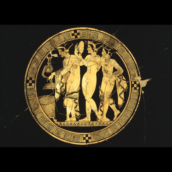 Ceramica de figuras rojas que muestras mujeres etruscas embelleciendose