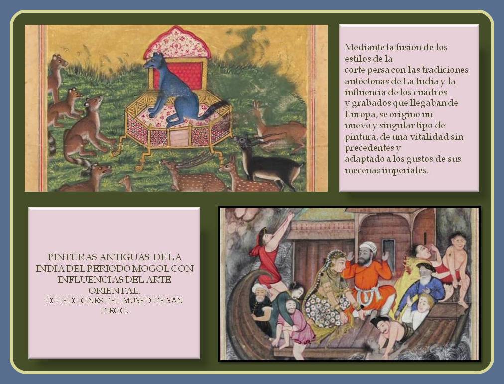 Pinturas del periodo Mogol con influencias orientales.