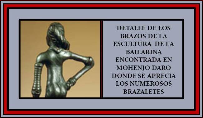 Detalle de los brazos de la escultura de la bailarina de Mohenjo Daro