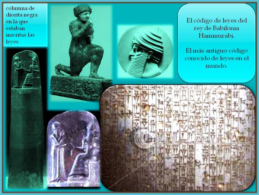 En 1902 exploradores franceses descubrieron en Susa una piedra de diorita negra en la que estaban inscritas las leyes promulgadas por el Rey Hammurabi, rey de Babilonia, 2285-2242 A.C. Estas llamadas leyes eran determinaciones que el rey había tomado en relación a como debía impartirse justicia en su reino. Si parece que Hammurabi insiste en que le fueron entregadas por el dios Samash, o una entidad a quien a el le merecio el titulo de Dios. Se aseguro no obstante que lo estipulado en ellas se cumpliese e incluso terribles maldiciones por órdenes suyas fueron también escritas para todo aquel que osara cambiarlas o no cumplirlas.